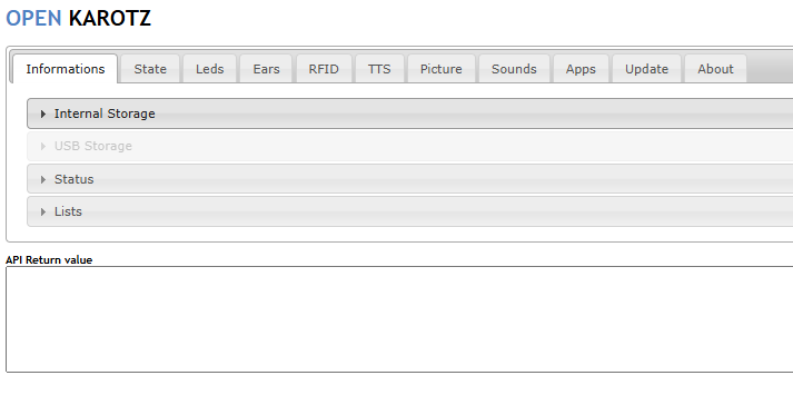 L'interface Web Open Karotz propose diverses fonctionnalités pour contrôler le lapin en appelant ses différentes api.