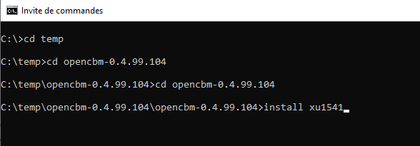 Via l'invite de commande Windows, accédez à ce répertoire (commande cd) et entrez la commande install xu1541.